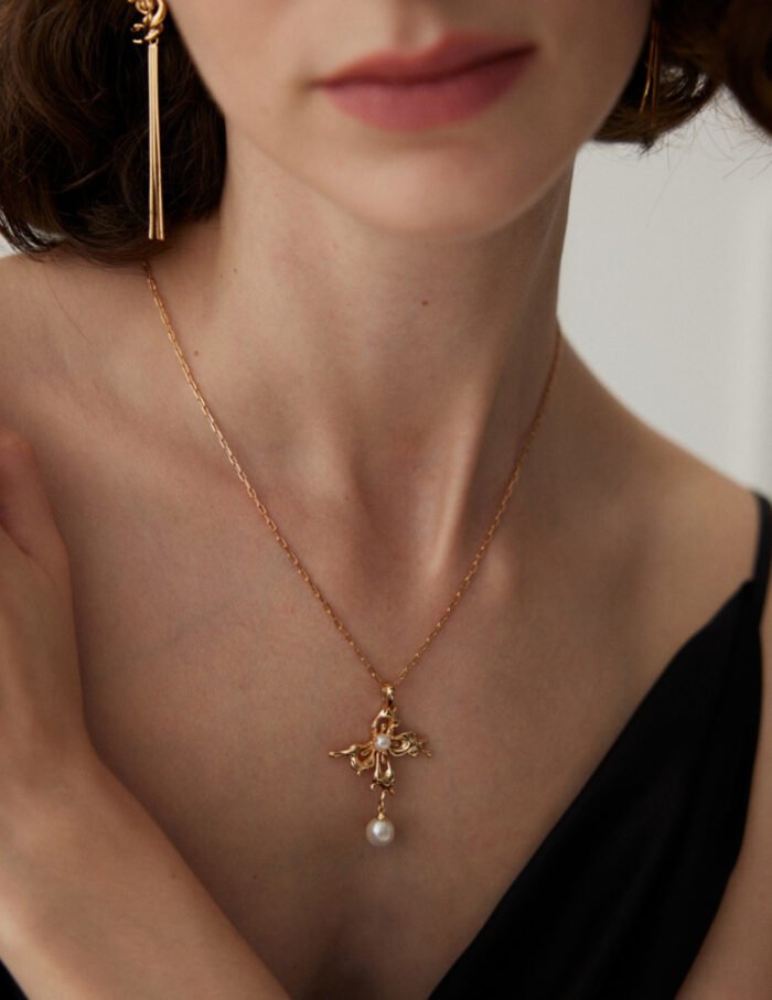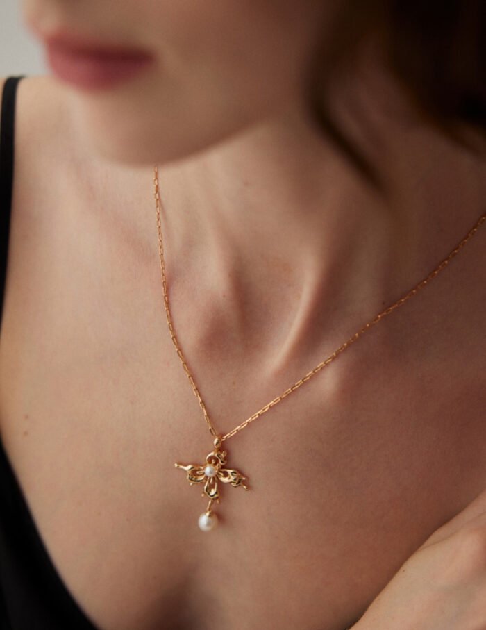 Fantasy Vintage Golden Natural Pearl 925 Silver Necklace