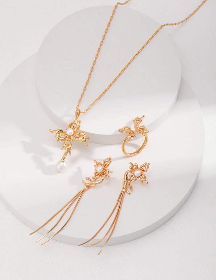 Vintage Gold 925 Silver Natural Pearl Jewelry