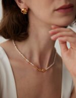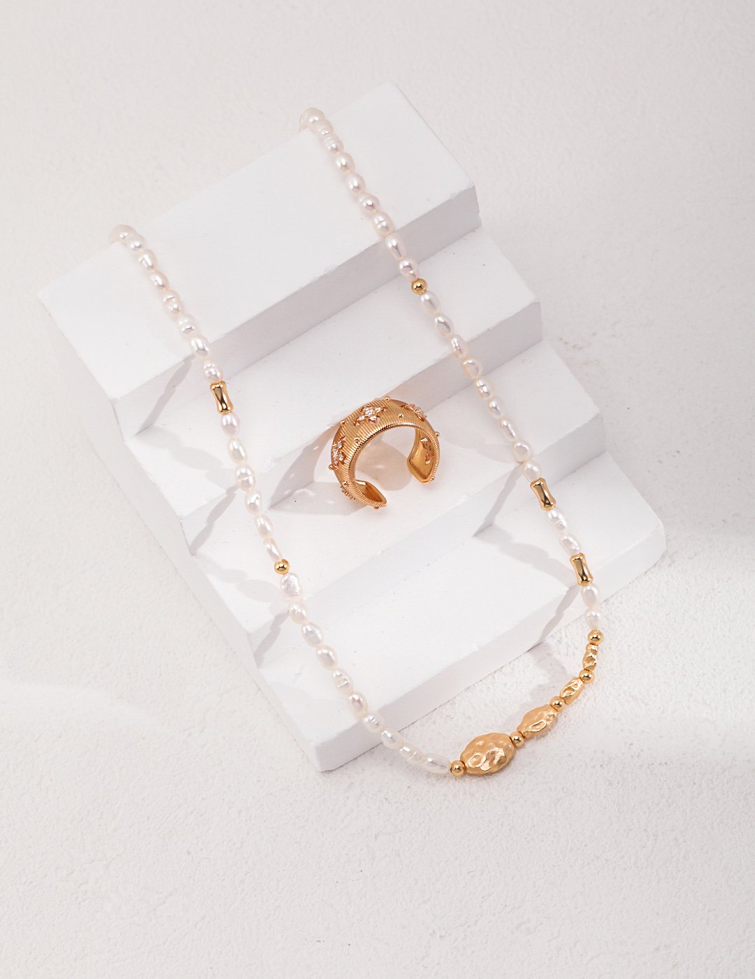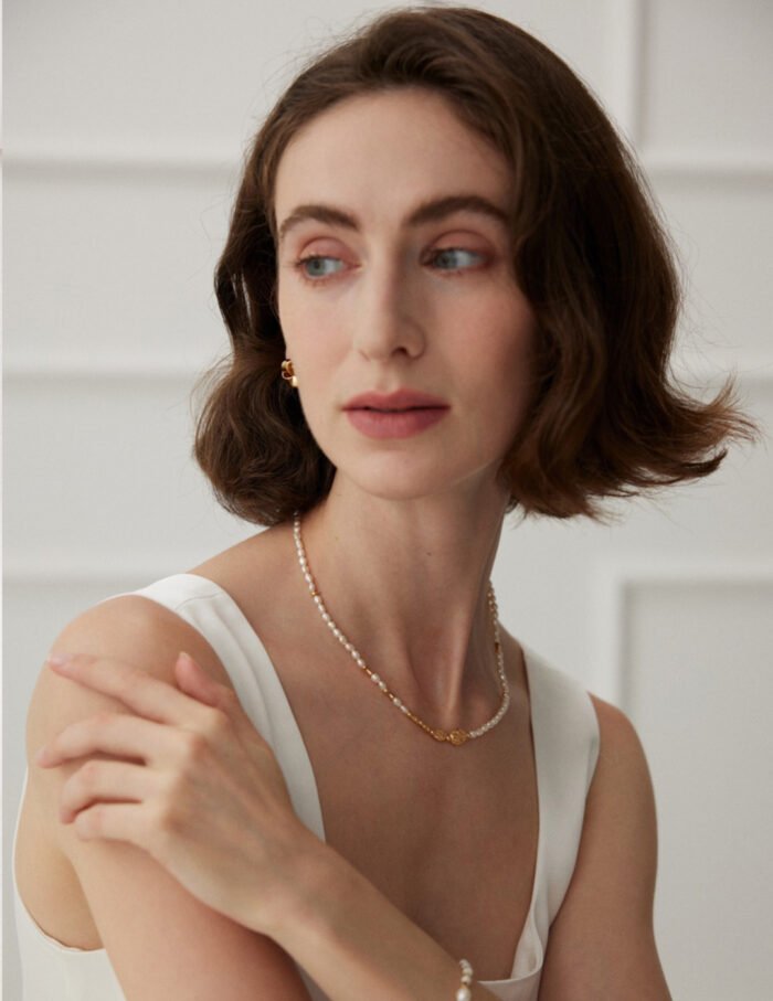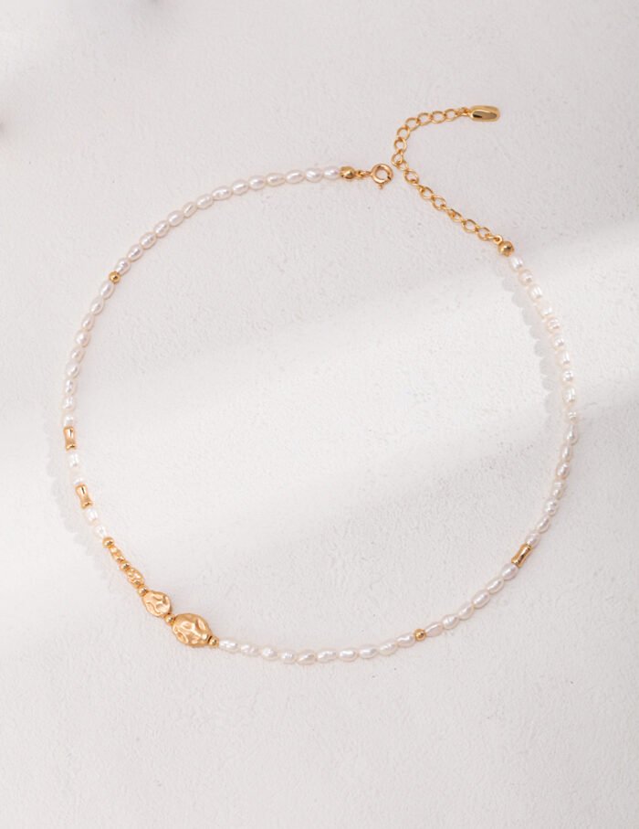 This sterling silver pearl necklace is the perfect combination of quality and sophistication. Made of 925 silver and paired with natural pearls, it presents a charming vintage gold color. The chain length is about 37cm, and it is equipped with a 7cm extension chain to adapt to different neck circumference needs. Each pearl is selected from the finest natural raw materials, showing a round and full natural texture and exuding a unique luster. This necklace shows both elegance and luxury. It is one of the must-have accessories for fashionable women.