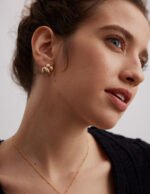 These pearl sterling silver earrings are made of 925 silver and natural pearls, showing two elegant tones of vintage gold and white gold. The earrings are about 1.5cm wide and the diameter of the inlaid pearls is about 5.3mm. The design is abstract, turning passion and sincerity into hot love. The three-dimensional curved surface luster sexyly shows the light of confidence.