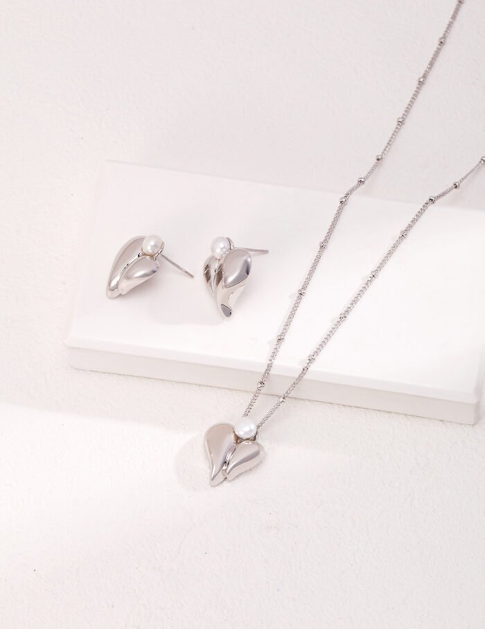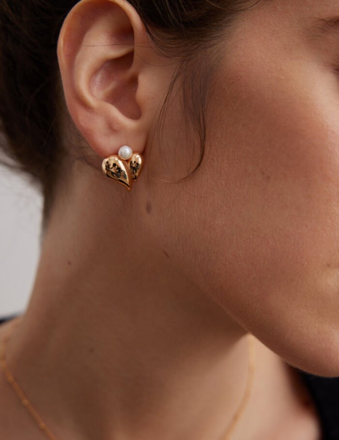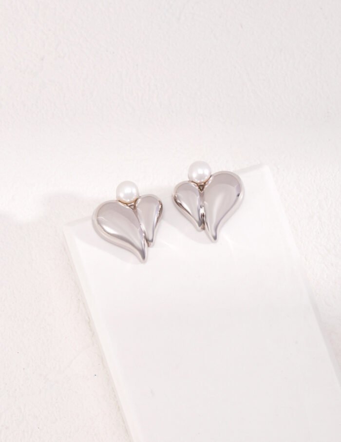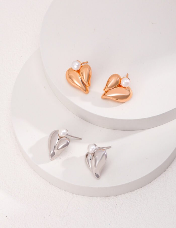These pearl sterling silver earrings are made of 925 silver and natural pearls, showing two elegant tones of vintage gold and white gold. The earrings are about 1.5cm wide and the diameter of the inlaid pearls is about 5.3mm. The design is abstract, turning passion and sincerity into hot love. The three-dimensional curved surface luster sexyly shows the light of confidence.