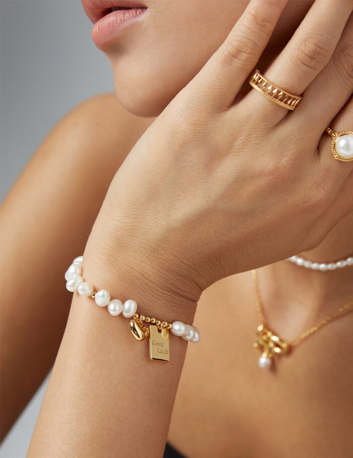 This vintage gold and white gold sterling silver pearl bracelet showcases the perfect blend of elegance and style. The bracelet is made of high-quality S925 silver and inlaid with natural pearls. The overall design is elegant and unique. The length of the bracelet is about 16cm, and it is equipped with a 3cm extension chain, which is convenient for the wearer to adjust according to the size of the wrist. The height of the pendant is about 11mm and 16mm respectively, the weight is about 10g, and the diameter of the pearl is about 7mm. The combination of vintage gold and white gold makes the bracelet exude a charming brilliance whether it is worn daily or on formal occasions.