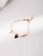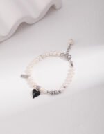 This bracelet is made of high-quality S925 silver material, with natural pearls and black drop glaze, showing exquisite design and elegant temperament. The bracelet chain is about 16cm long and comes with a 3cm extension chain, suitable for different wrist sizes. The pendant is about 12mm high and 10mm wide, and the pearls are about 6mm and 7mm respectively, showing charming luster and pure color.